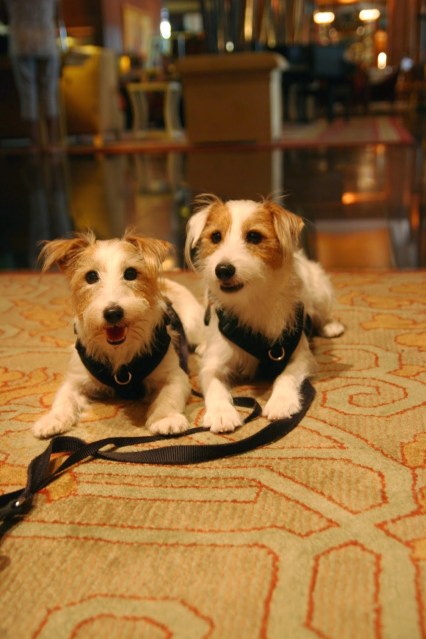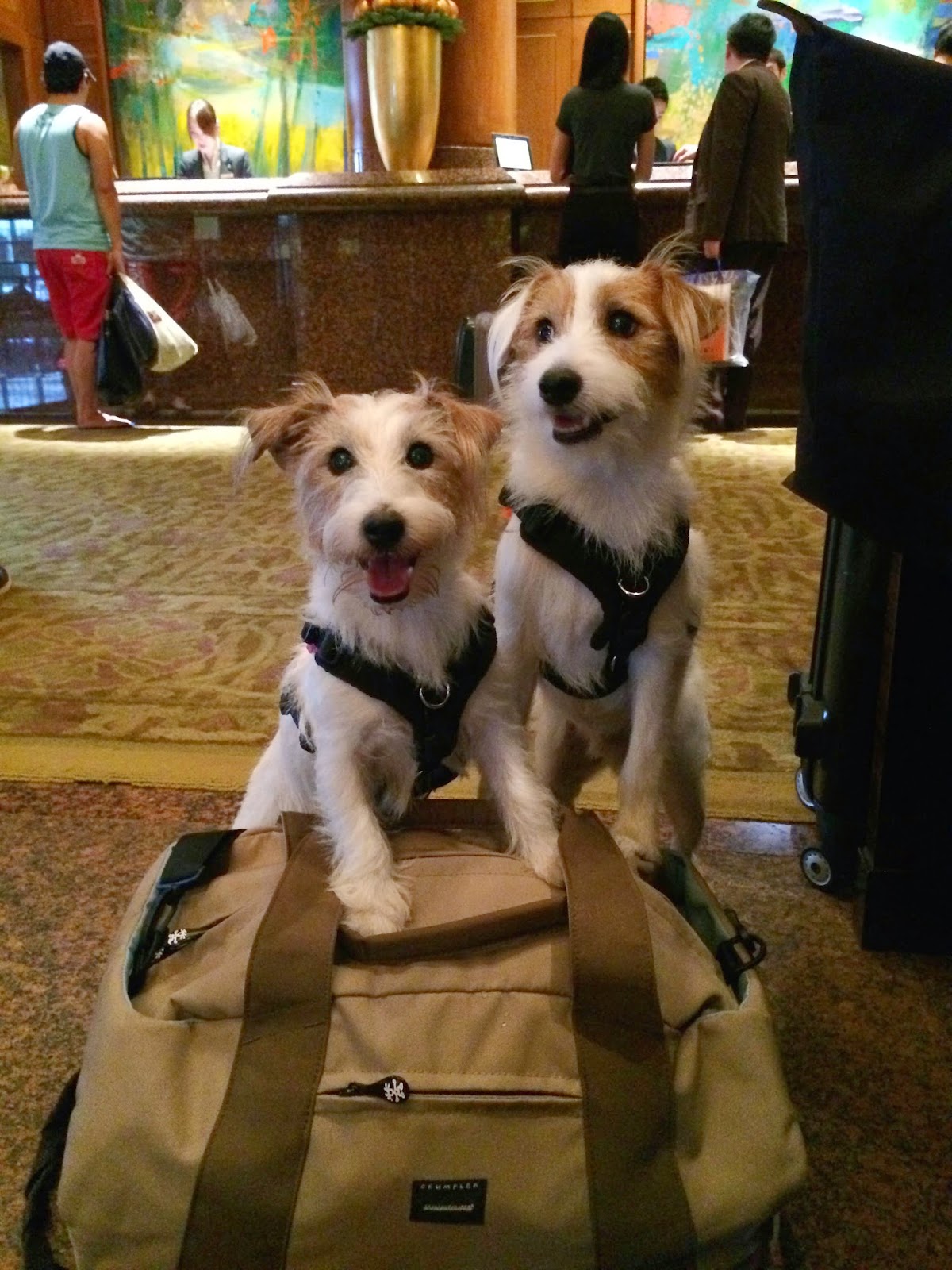 Hihi! Nope, dogs don't have to be in carriers or in the hotel areas. We could walk in and out of the lobby on the leash. Mummy did make sure that we didn't approach other guests or disturb them. But there were many who came up to say hi! =D