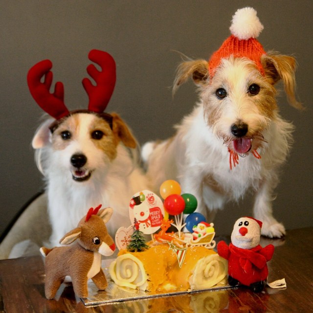 I’m Sam the Reinterrier and Pecan ah ma is the…. “I’ll just wear a random winter hat to pass off as I’m celebrating X’mas”… erm… Santa’s helper.