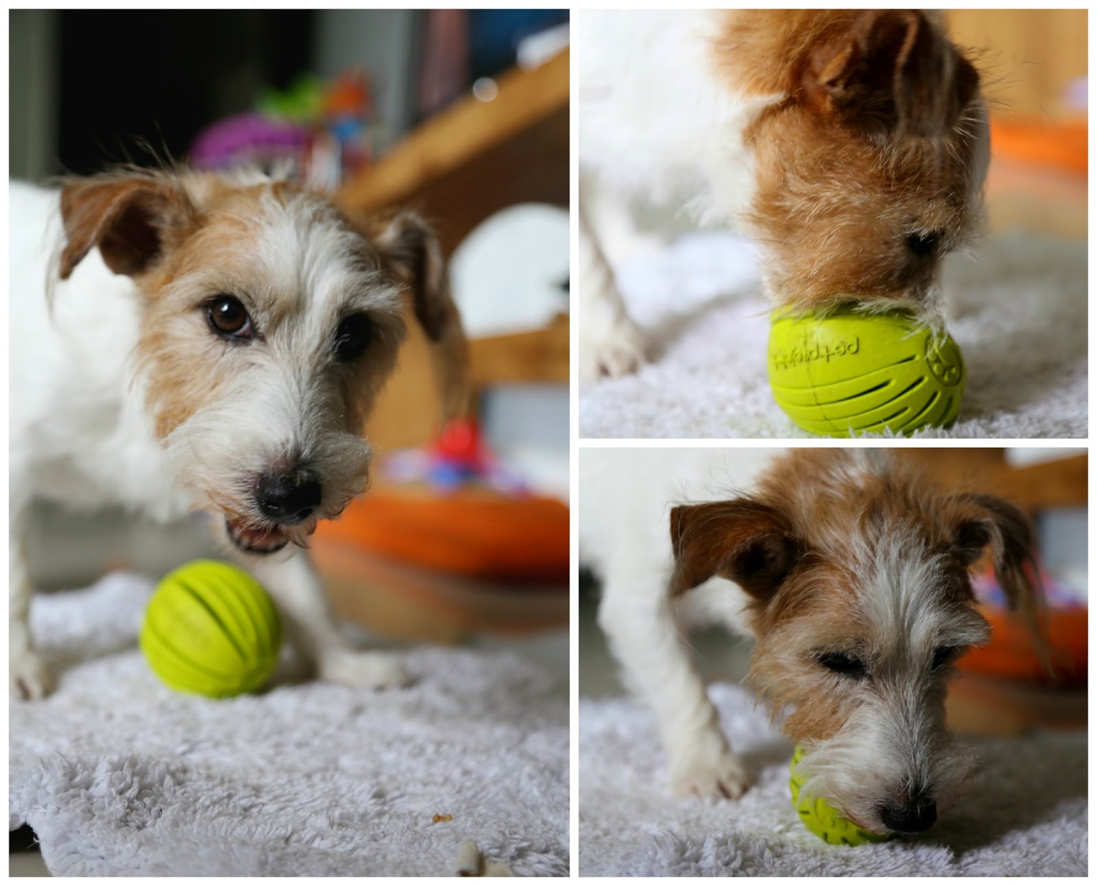 It’s a pretty straightforward toy – just stuff treats in and let your pooch do the rest.