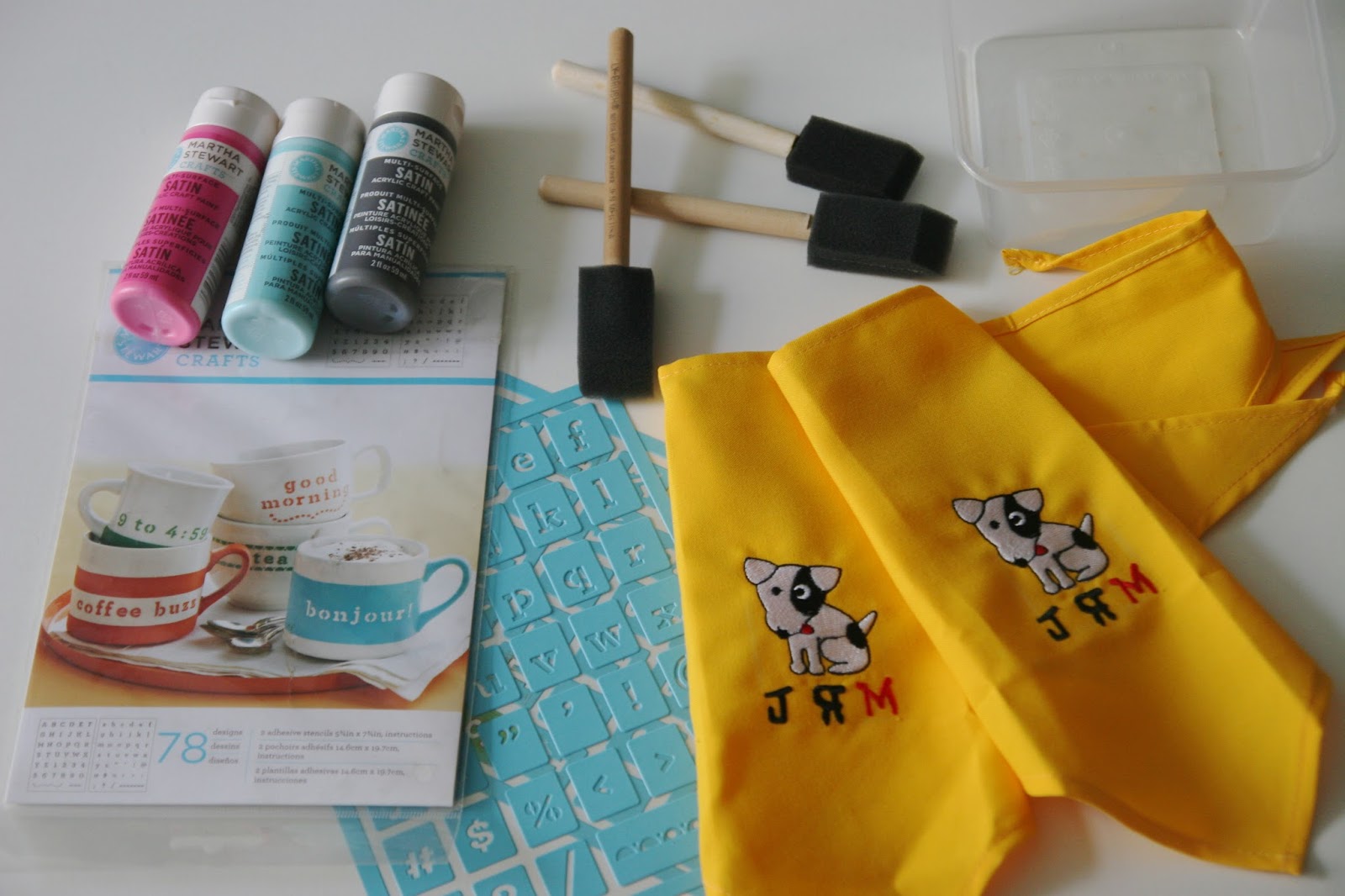 All she used were Martha Stewart stencils, satin paint, a sponge brush and a plastic container.