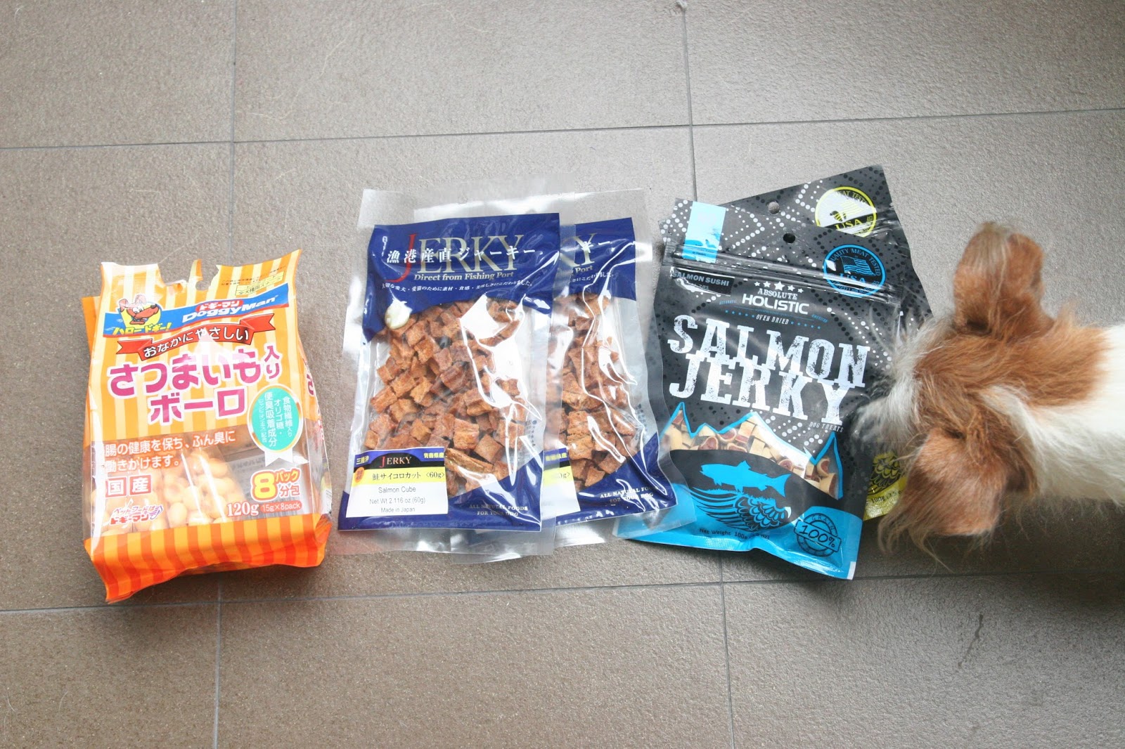 Here’s what we recommend: 1. Sweet Potatoes Bolo Doggyman 2. Jerky Fish (Salmon cubes) 3. Absolute Holistic (Sushi)