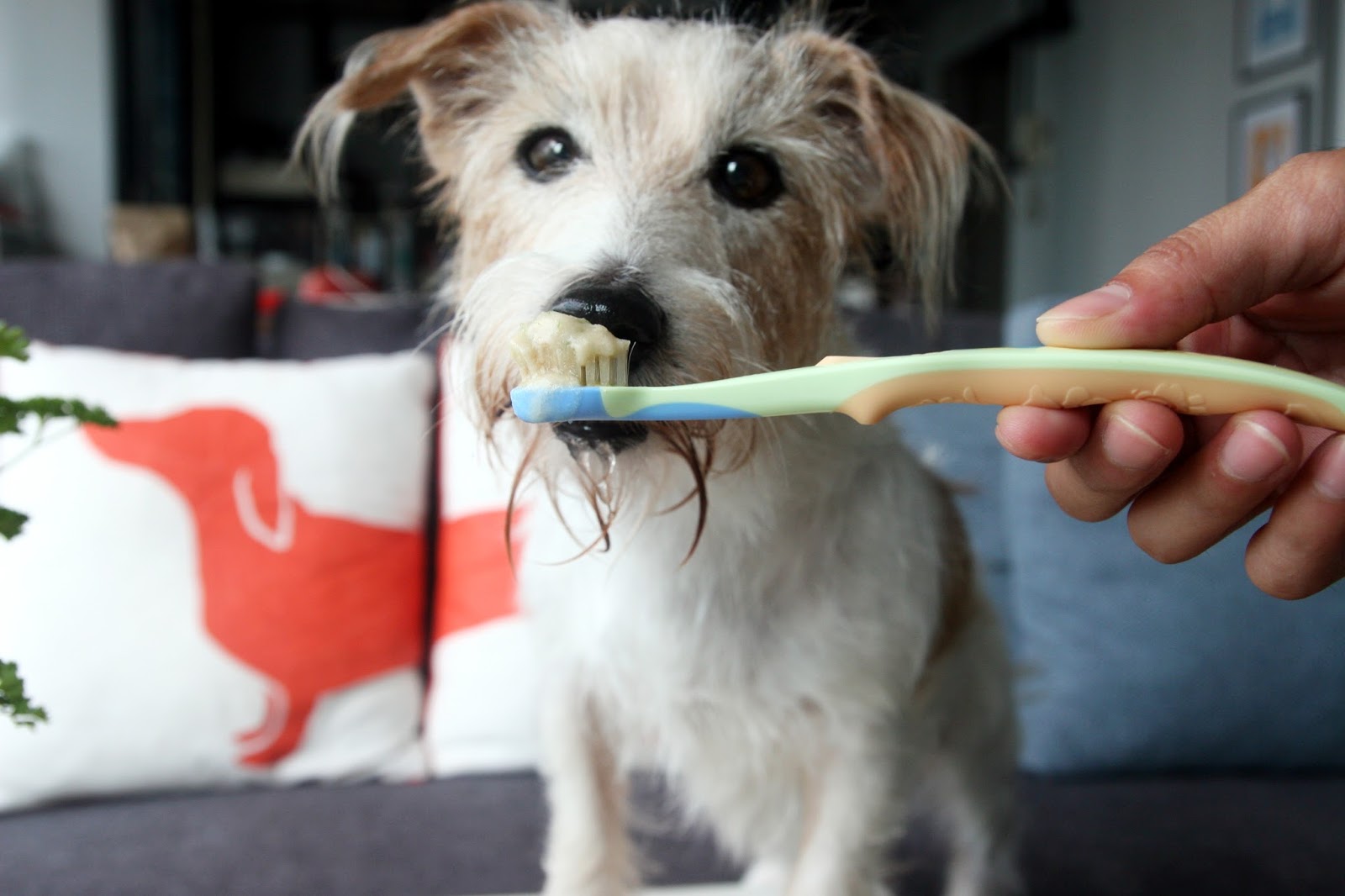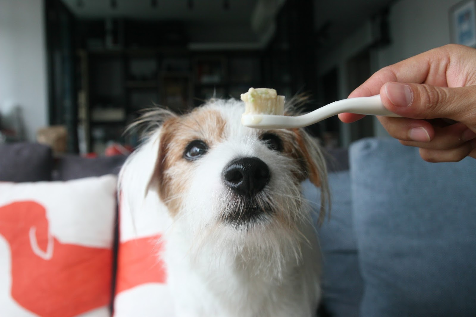 Mummy used to buy the dog toothbrush, before realising that kids’ toothbrushes work just as well and just at a fraction of the price!