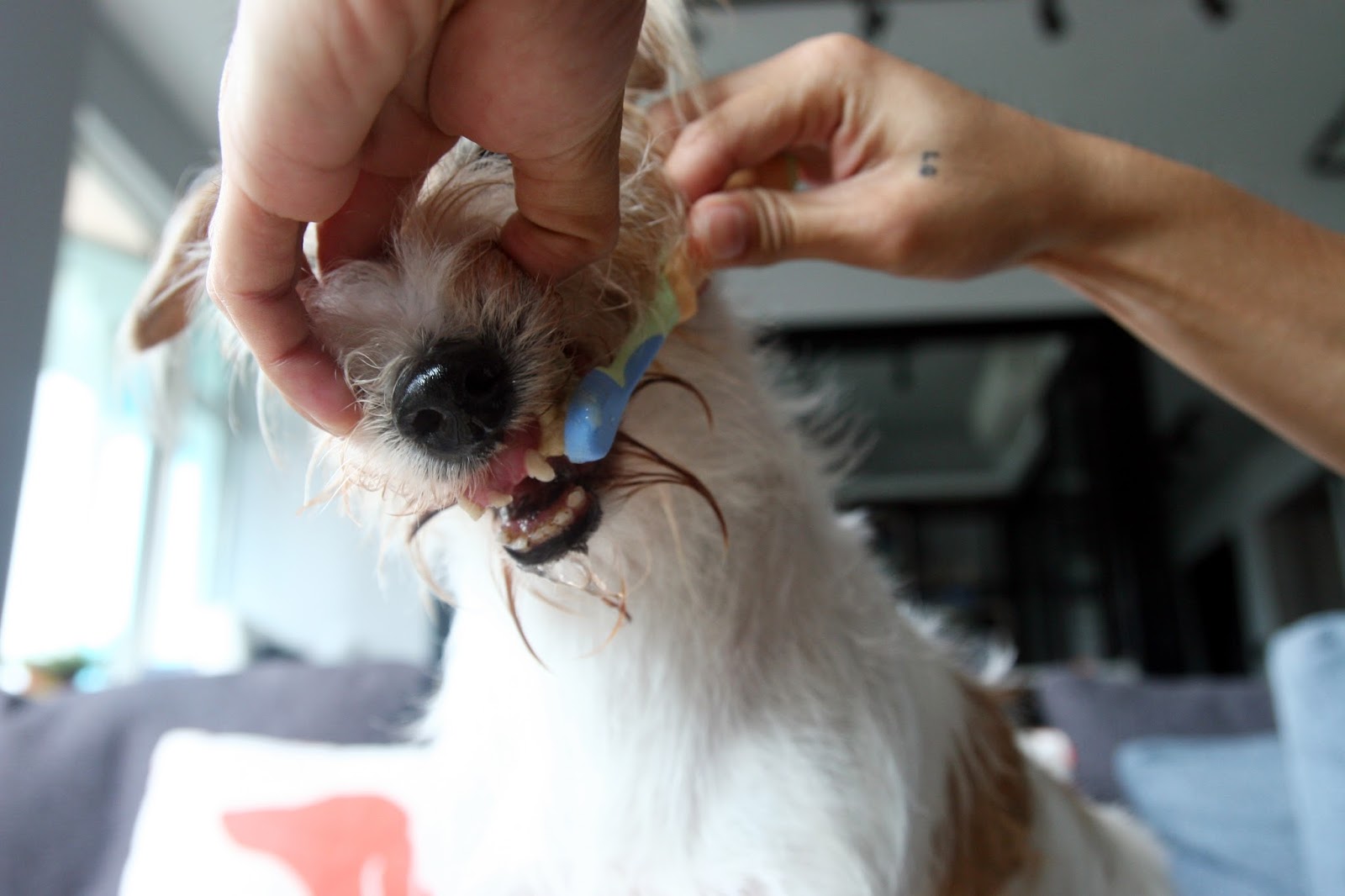 Now, her breath is way better. And to ensure that she doesn’t have to go under anesthesia in future, Mummy is doing her best to keep those remaining teeth clean and tartar free.