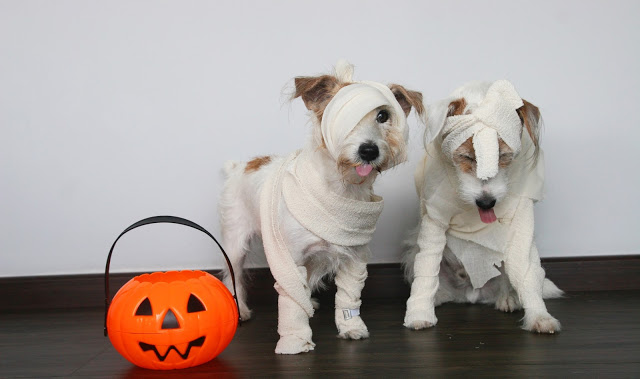 Meet Sam and Pecan, the Jack Russell Mummies.