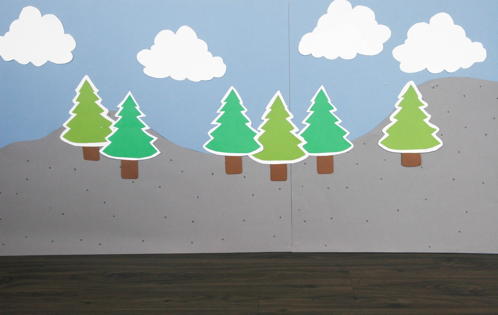 Mummy’s tip: Use Blue-tac to secure the items to the background. This will allow you to shift the trees and clouds around as you deem fit. Plus, you can reuse the background for the next project.