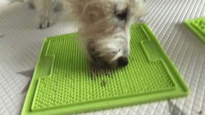 These mats are quite interesting – they are designed to keep pets occupied and stimulated. All you have to do is to spread some treats/peanut butter/wet food over the surface, and we will work every morsel with our lickin’ tongues!Sounds pretty neat huh. Stupid Mummy decided to test this out using K9 Natural canned tripe. But hey, we ain’t complaining.#smellsheavenlytous #smellslikelokangtoher #wahhahahah