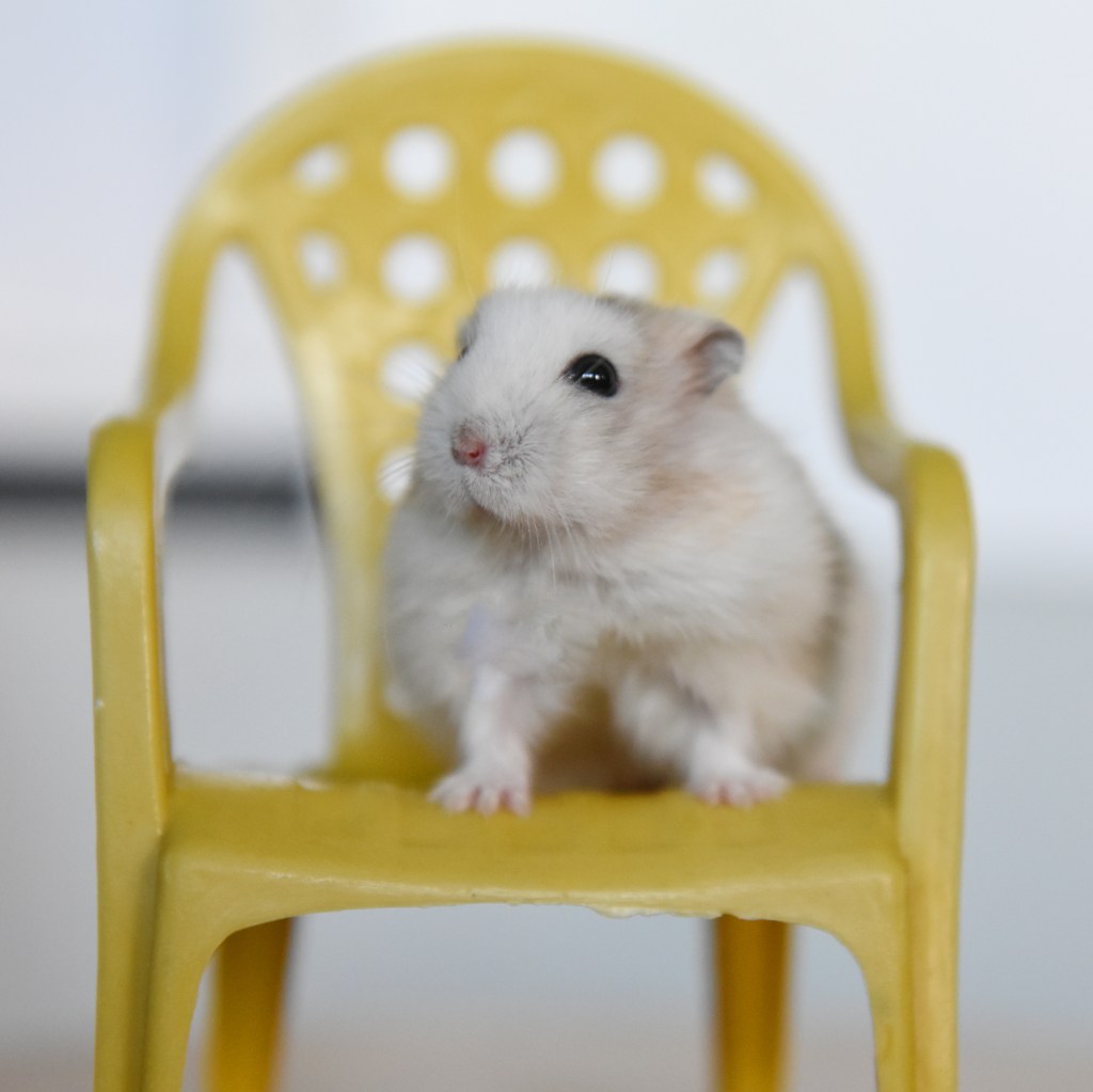 Pan the Ham lives life on the edge by being the only hammy in a house full of terrors, erm, we meant terriers. A lone Dwarf Winter White (technically his colour is pudding), he resides in his own mansion surrounded by tons of bedding, an awesome wheel and an endless supply of nuts, fruits and his very favourite, freeze dried chicken.